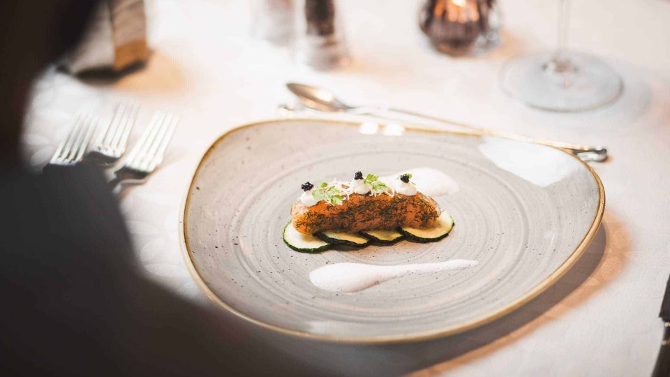 Abends mehrgängiges Verwöhnmenü mit frischen Salaten, Vorspeisen vom Buffet, ausgesuchtes Weinangebot, Käsebrett.